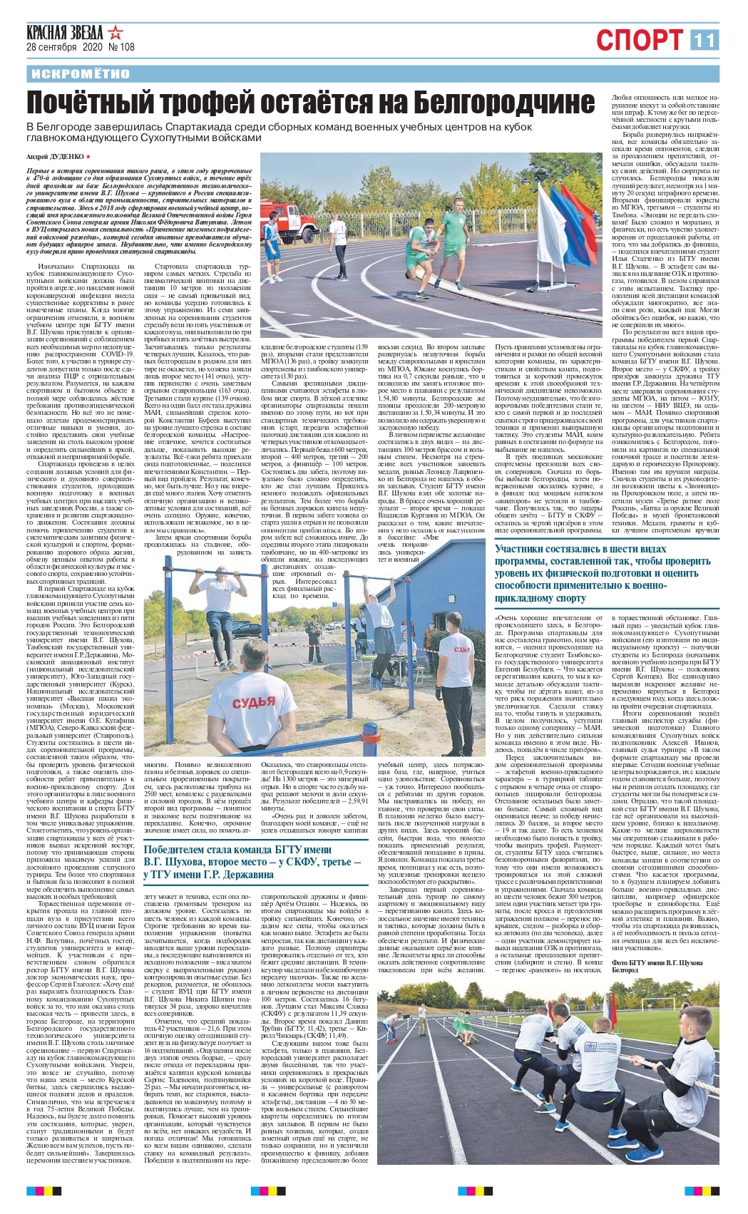 Обо всем что происходило на Спартакиаде вы можете прочесть в Газете "Красная Звезда" в номере 108 от 28 сентября 2020 года по ссылке: http://milvuc.bstu.ru/shared/attachments/224161